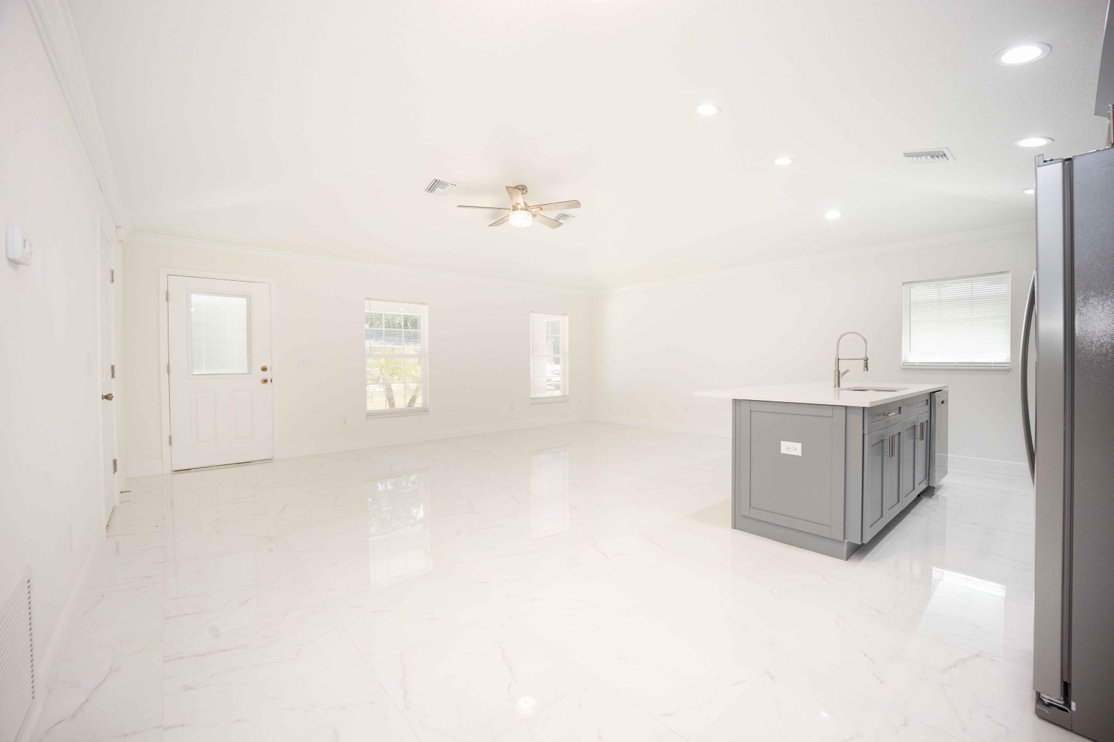 Welcome Home! This 3BR/2BA NEW construction home is MOVE-IN ready. Tucked away off of CR 466A this LUXURY home is located within minutes of Trailwinds Plaza, Brownwood, dining, shopping, entertainment, and all the future development like a brand new Target and Home Depot just to name a few. Situated on a .12 acre lot this home has the freedom that you have been looking for. With no spared expense this 1,300+/- sqft home features marble flooring, tray ceilings, a one-car garage, a patio, and mature landscaping. Upon entering the home you are welcomed with an open floor plan with voluminous ceilings. The kitchen features shaker cabinetry, quartz countertops, stainless steel appliances, and recessed lighting. Overlooked by the kitchen the living room/dining room combo offers plenty of space for entertaining guests or family fun. The master bedroom is spacious with a walk-in closet and a master ensuite featuring a tiled walk-in shower with a glass enclosure. The spare bedrooms are spacious with a shared hall/guest bath. The backyard features a massive patio allowing for plenty of yard space and room for your four-legged loved ones to run around. With a luxury feel and convenience to all the amenities, this property won't last long! So don't want and call today before it's gone!